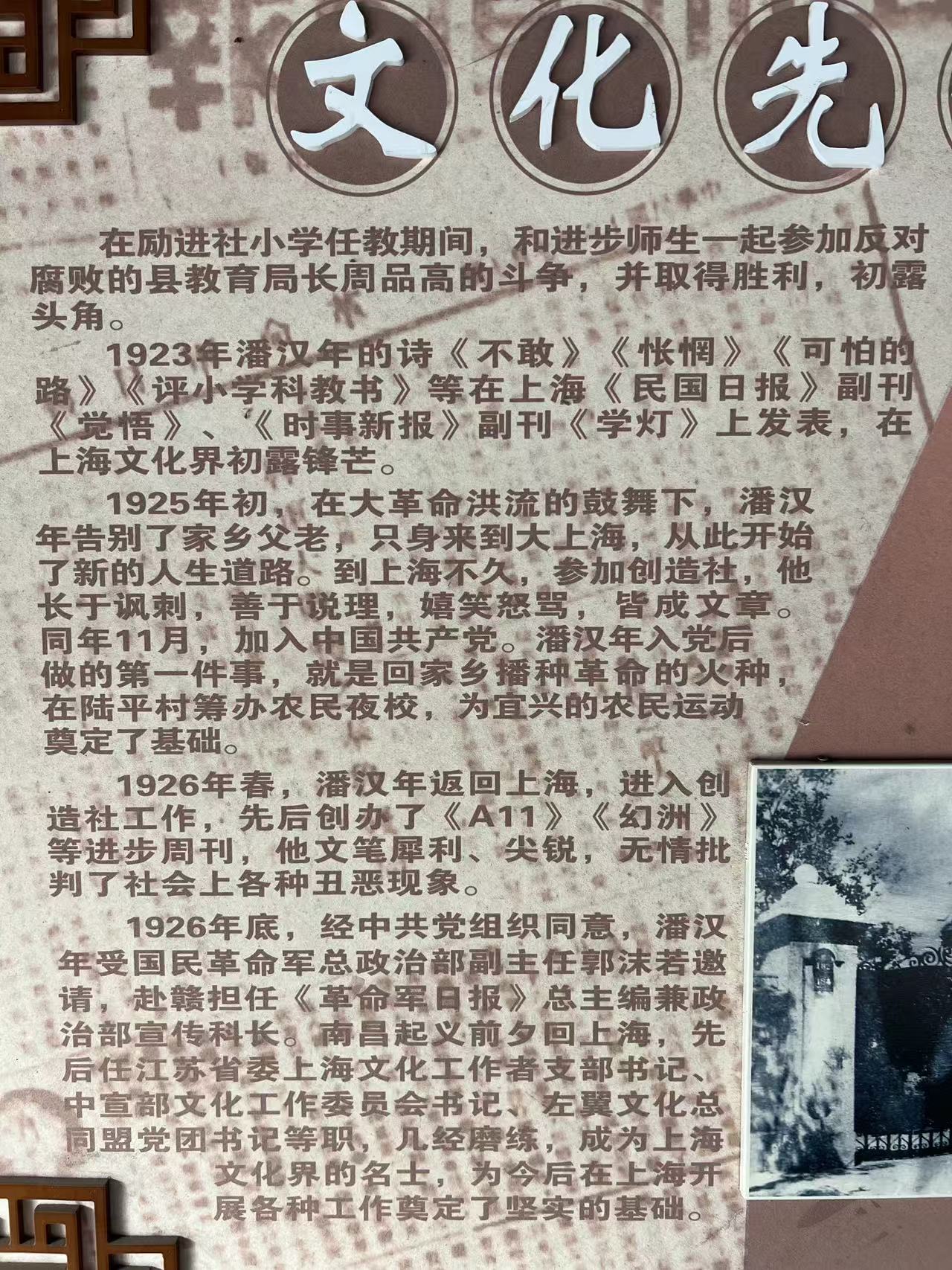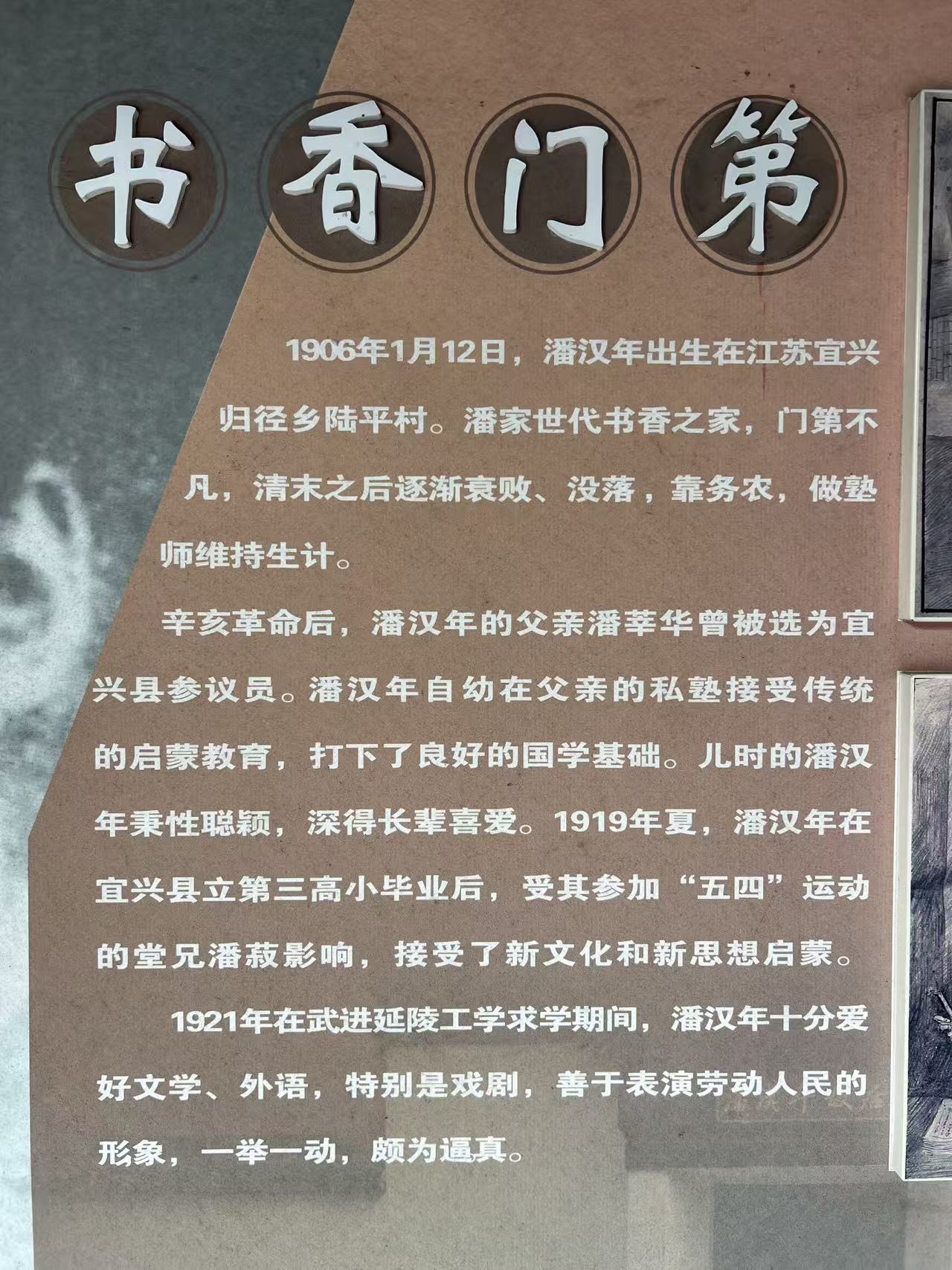 律师动态 > 2025年10月27日郑律师在宜兴市人民法院徐舍人民法庭出庭一个离婚纠纷案,庭审后开车返程,在104国道边看到潘汉年故居的牌识,于是决定去看看。潘汉年故居位于宜兴市新街街道陆平村上,104国道拐进去大概一公里多就到了。潘汉年故居是原址重建的。以下是根据故居的介绍陈列等整理的文字。更多的看图片中的文字。