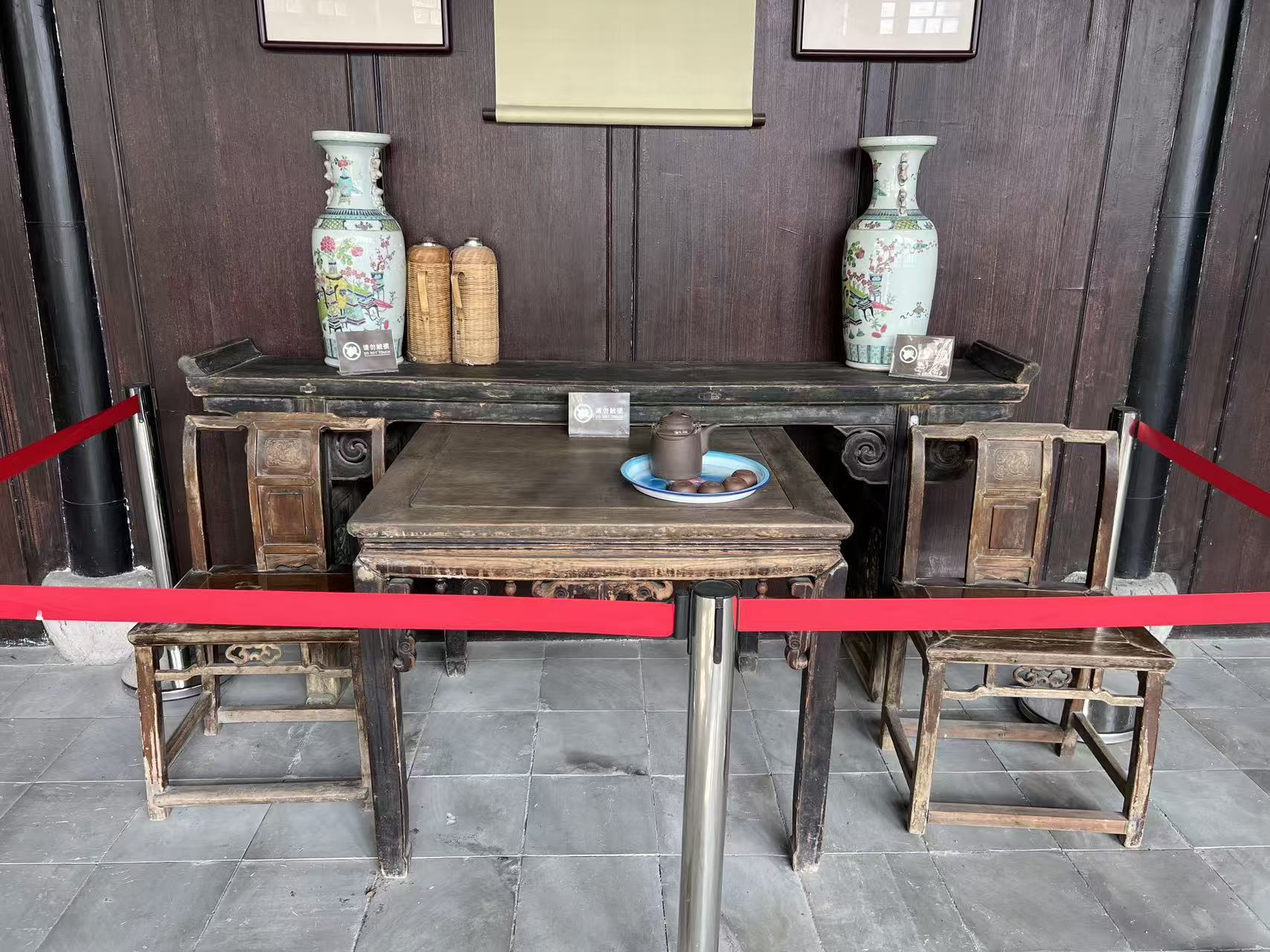 天井: 位于一二进之间,回廊式,进深12.7米,中央立有潘汉年半身塑像
